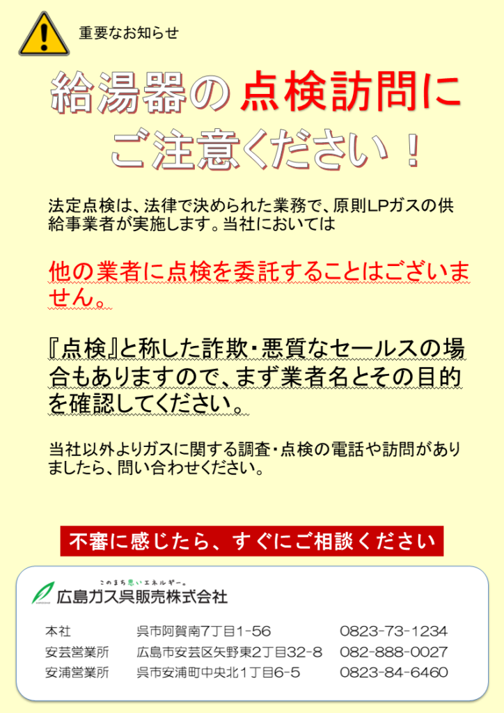 【重要なお知らせ】給湯器の点検訪問にご注意ください